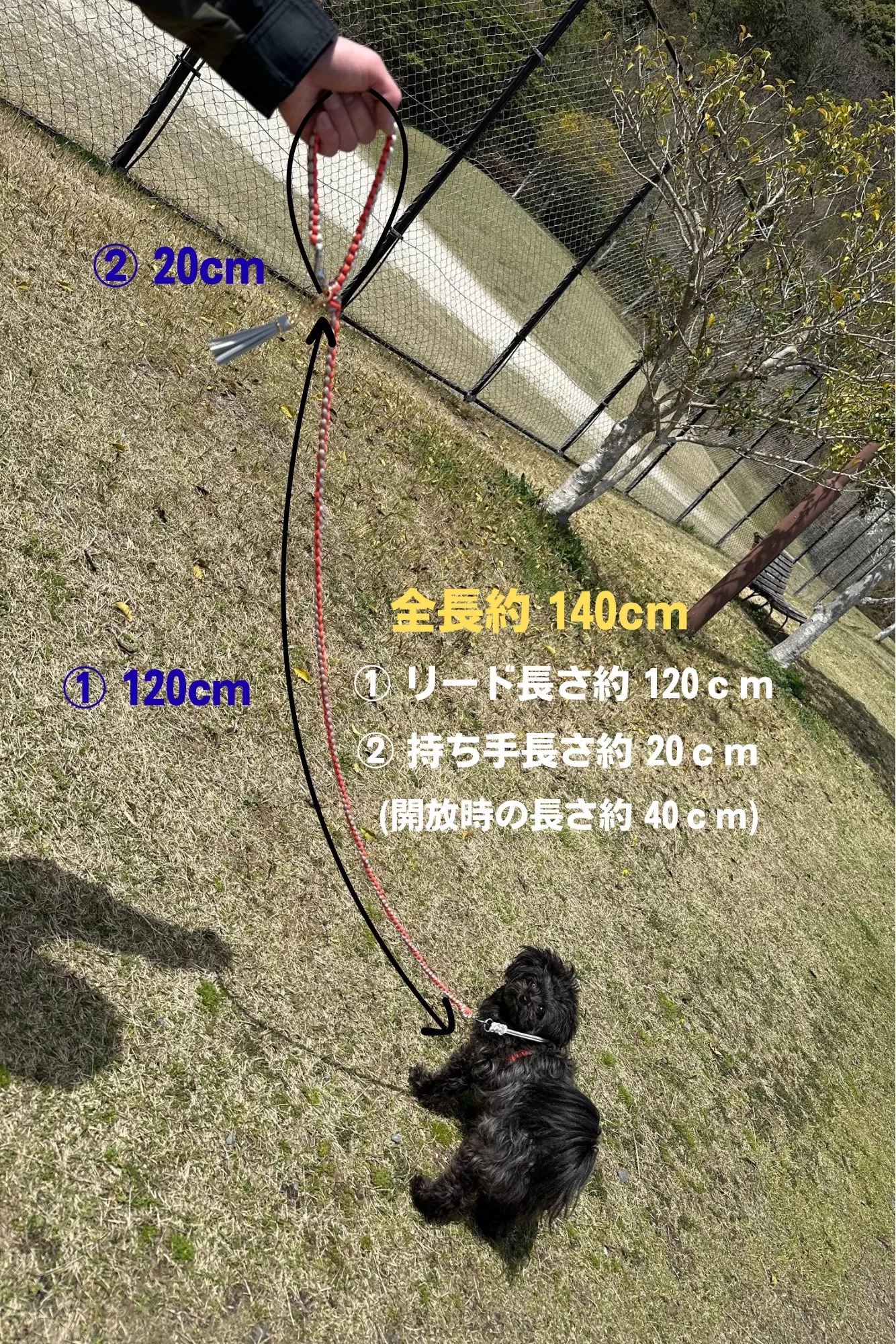 カフェドッグリード 犬用リード(小型犬、中型犬に最適です) 全長約140cm リード長さ約120cm 持ち手長さ約20cm (開放時の長さ約40cm) 持ち手部分はサイズ調整可能です。